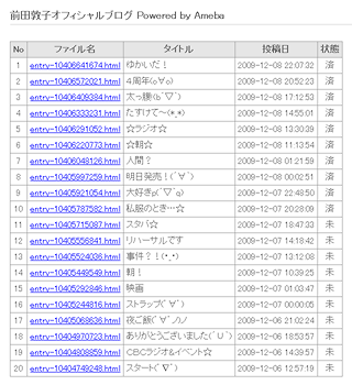 ※インデックスファイルを開くのに時間がかかる場合は記事数を小さくしてください。