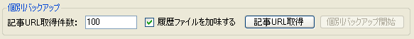 記事URLの読み込みが終了したらバックアップしたい記事のチェックボックスにチェックを入れ、[個別バックアップ開始]ボタンをクリックします。