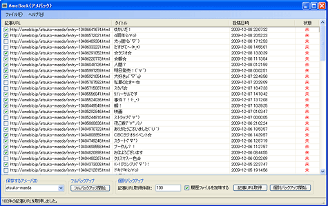 ブログ 記事 画像 バックアップツール Ameback(アメバック) はアメーバブログ(アメブロ)の記事、記事に掲載している画像を丸ごと高速にバックアップするツールです。