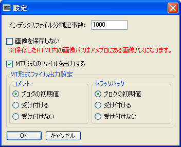 MT形式ファイル内の記事に対するコメント、トラックバックの設定です。